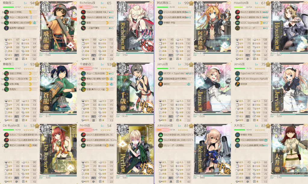 ・編成艦種:正空2 戦艦1 軽空1 軽巡2/軽巡1 雷巡1 重巡1 駆逐3