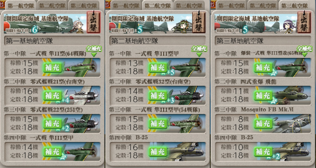 ・基地航空:Y(通常)・Y(通常)・Z(ボス)