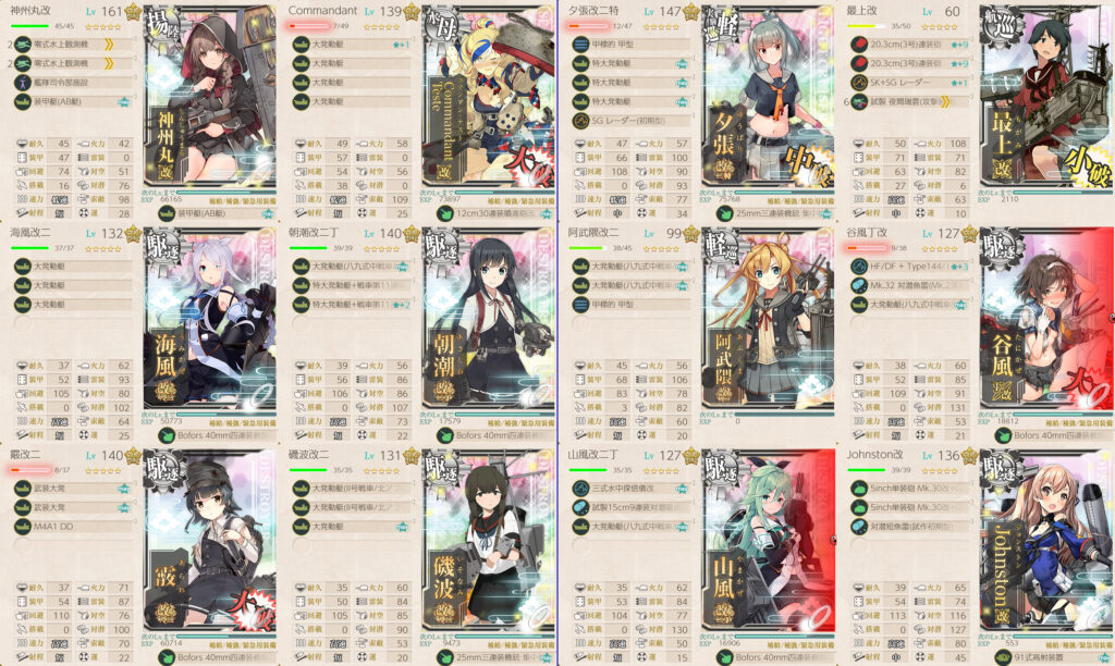 【E6】輸送(第二ゲージ)【2023早春イベ】 2023.04.07 イベント艦これ攻略 目次 海域編成 海域 H:空襲 H2:夜戦 J:空襲 K:対潜空襲 M:揚陸 O:連合(ボス) 編成 ・編成艦種 揚陸 水母 駆逐4 / 軽巡2 航巡1 駆逐3 ・艦隊制空:0 ・必要索敵:一定以上 ・艦隊速度:低速可 ・基地航空:出せない ・支援艦隊:無し ・出撃識別:逆上陸部隊(G) コピペ。 基本的に逆上陸部隊(G)札はここだけ。 道中撤退&ボスT不利を引いたときに敗北したが、基本的には支援無しでもA勝利取れると思う。 レべリングする時間が取れなかったため攻略再開