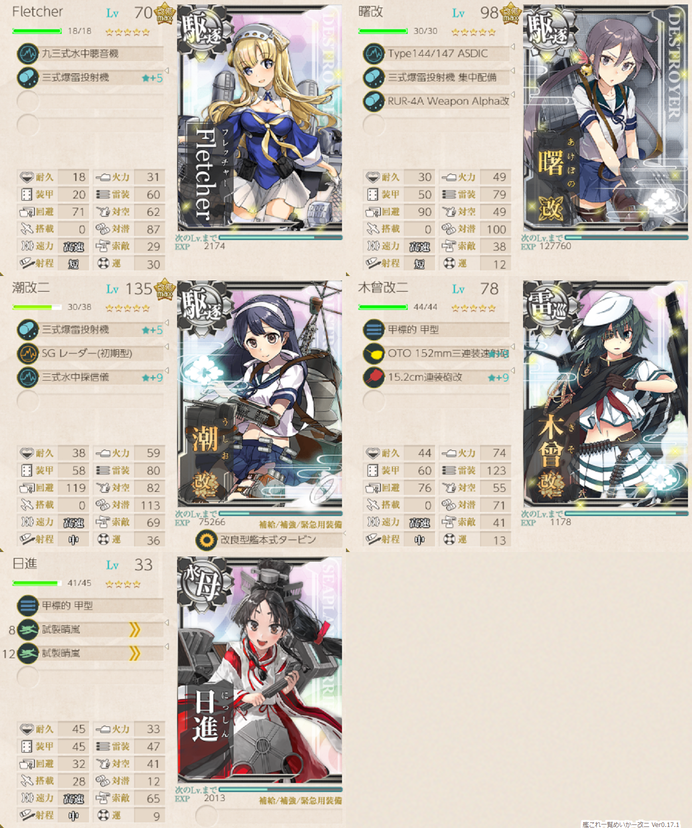 上3隻を海防艦・下3隻を駆逐軽巡水母にすることで、全ての戦闘を警戒陣で突破できます