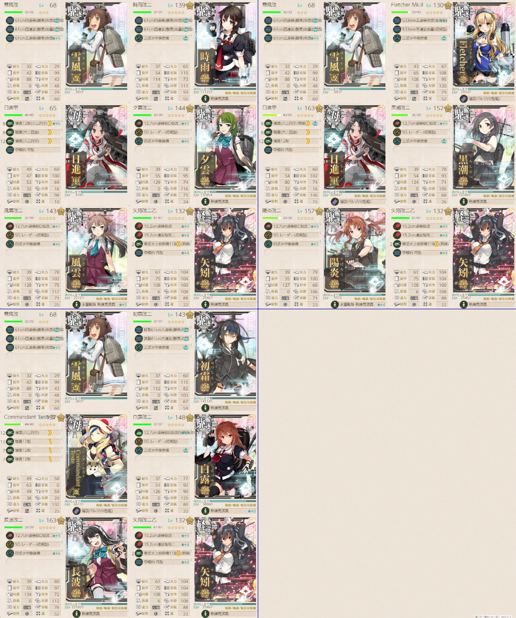 旗艦固定、矢矧枠は夕張・能代とローテ、残りは2隻2隻で大発艦ローテ。ルート制御に高速統一・駆逐2隻に注意。